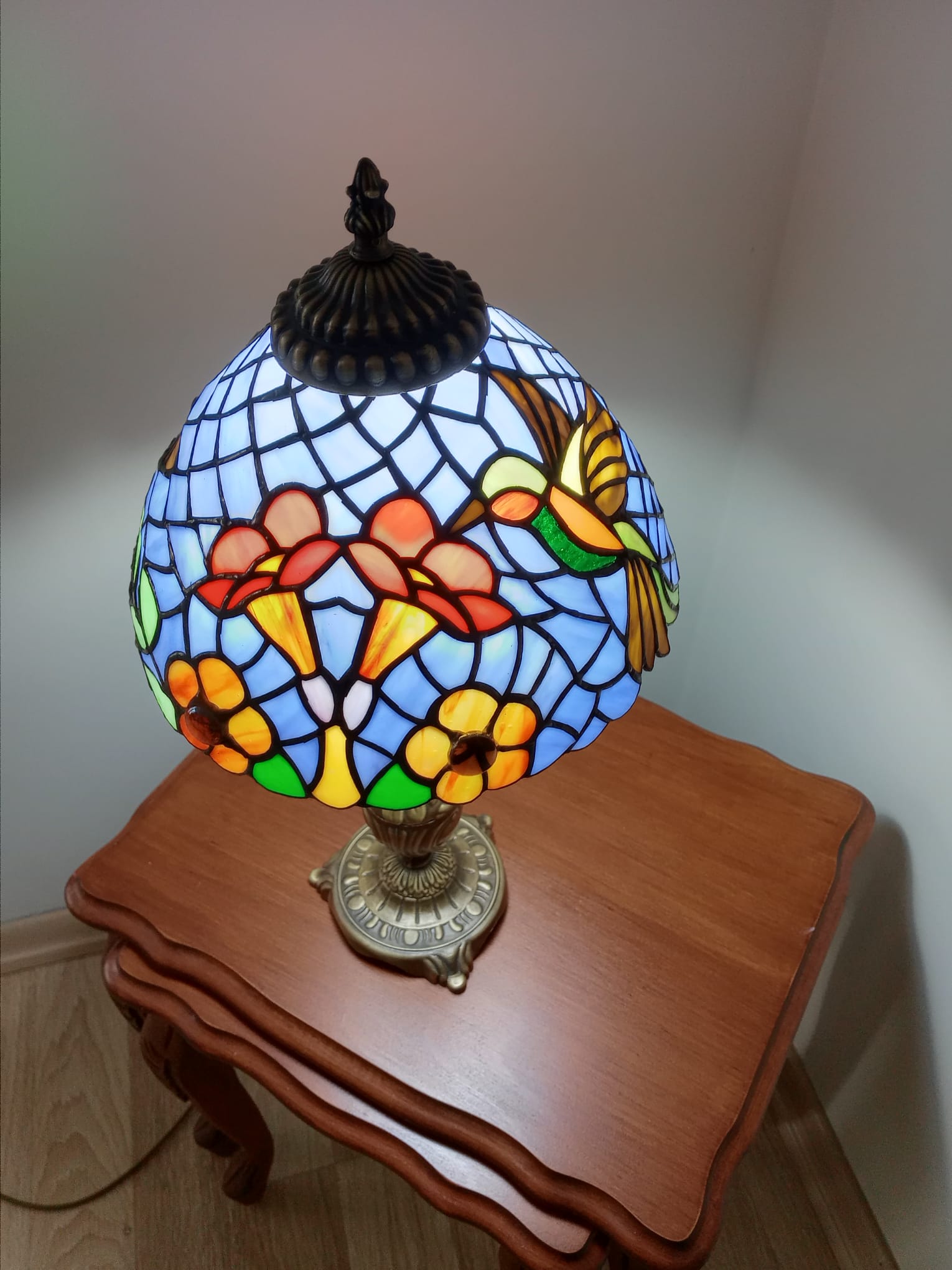 Bu özel vitray abajur, rengarenk kuşlar ve çiçek motifleriyle doğanın canlılığını evinize taşıyor.Cam parçalarının ışıkla buluştuğu her an, mekanınıza sıcak bir aydınlık ve eşsiz bir sanatsal atmosfer katıyor.Salonunuzda, yatak odanızda veya özel köşelerinizde kullanabileceğiniz bu abajur, sadece bir aydınlatma aracı değil, aynı zamanda göz alıcı bir dekoratif eser.